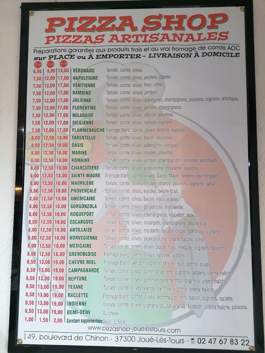 Welcome to Pizza Shop - France, nestled in the heart of Joué-lès-Tours at 149 Bd de Chinon. This charming pizzeria is renowned for its exceptional pizzas and a warm, inviting atmosphere. Enthusiastic patrons rave about the friendly service offered by the owners, making every visit feel like a homecoming. Highlights from the menu include the delectable pizza chèvre miel, celebrated for its perfect balance of flavors and a delightfully thin crust. With generous portions—some pizzas reaching a hefty 40cm—there's something for everyone. Customers like Mathilde Lepourtois and AquaStrxfe praise not only the food but also the engaging conversations with the warm-hearted owners. This local gem ensures that every pizza is crafted with care, making it a top recommendation for pizza lovers. Whether you’re a regular or a first-timer, a visit to Pizza Shop - France promises culinary satisfaction and a touch of familial warmth.